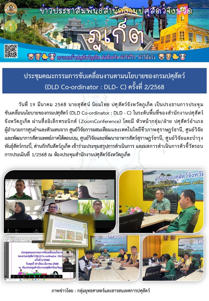 ประชุมคณะกรรมการขับเคลื่อนนโยบายของกรมปศุสัตว์ระดับพื้นที่ในรอบการประเมินที่ 1/2568