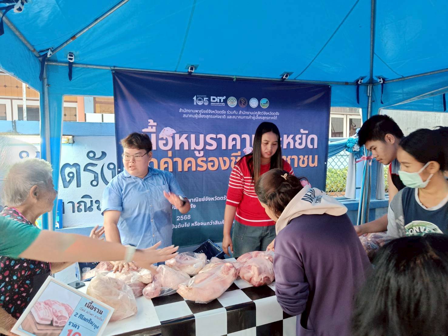 วันที่ 1 ตุลาคม 2568 เวลา 06.30 น. นายกฤษณ์ วีระวงศ์ ปศุสัตว์จังหวัดตรัง มอบหมายให้ นางสาวนุชธิดา ชนะแก้ว นายสัตวแพทย์ชำนาญการพิเศษ พร้อมเจ้าหน้าที่กลุ่มพัฒนาคุณภาพสินค้าปศุสัตว์ เเละ ปศุสัตว์อำเภอเมืองตรัง เข้าร่วมสังเกตการณ์กิจกรรม"จำหน่ายเนื้อสุกร 2 กิโล 100 ณ บริเวณหน้าสำนักงานพาณิชย์จังหวัดตรัง ตำบลทับเที่ยง อำเภอเมืองตรัง จังหวัดตรัง จุดประสงค์ในการดำเนินกิจกรรมเพื่อบรรเทาความเดือดร้อนให้กับเกษตรกรผู้เลี้ยงสุกรที่ไม่สามารถระบายสุกรได้และลดภาระค่าใช้จ่ายครองชีพให้ประชาชน การดำเนินกิจกรรมเป็นไปด้วยความเรียบร้อย