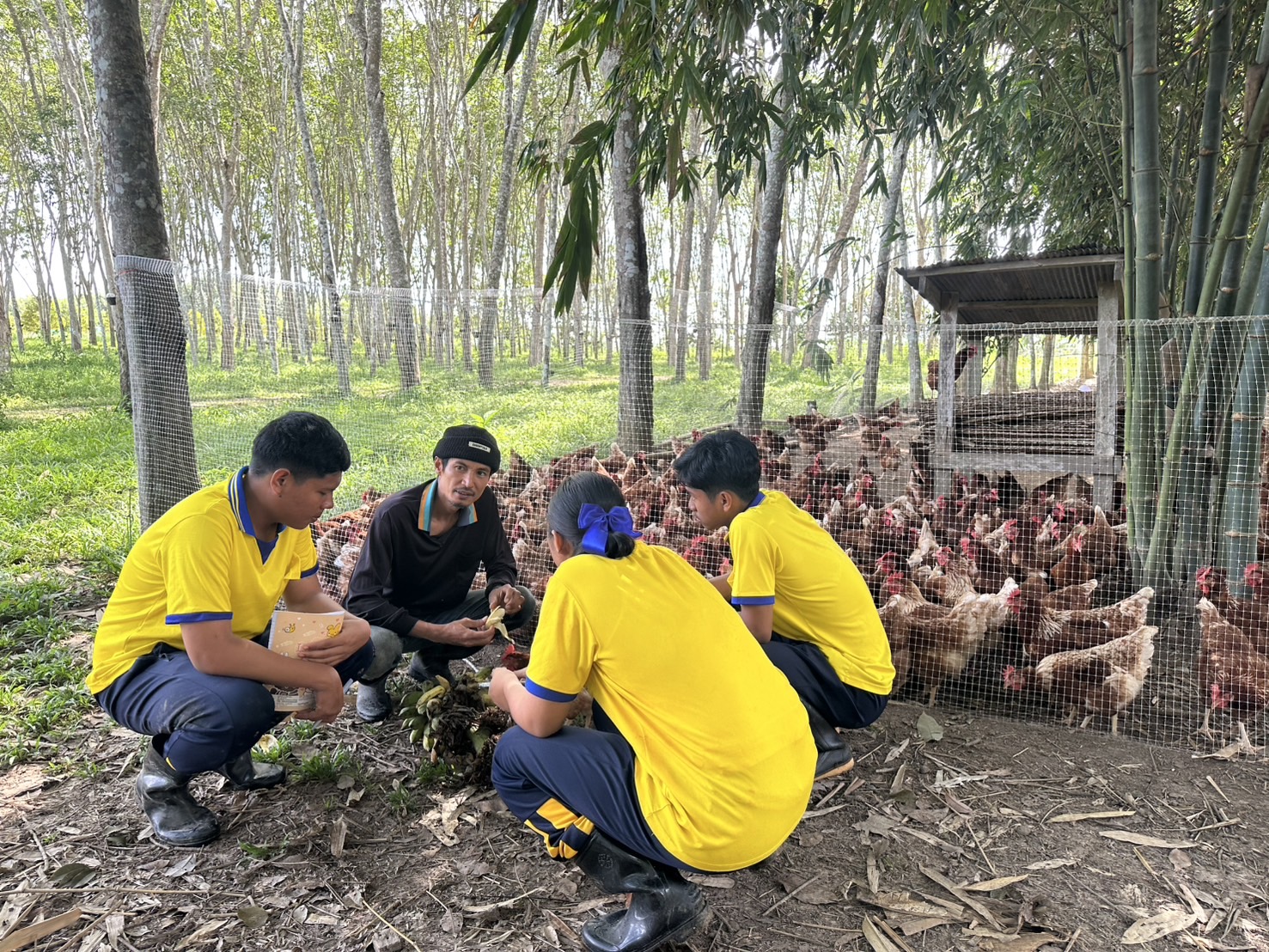 นายธีรยุทธ รอดภัย ปศุสัตว์อำเภอวิภาวดี เเละนายณัฐชัย จุติอมรเลิศ เจ้าพนักงานสัตวบาลอาวุโส ศูนย์วิจัยและพัฒนาอาหารสัตว์สุราษฎร์ธานีนำนักเรียนชั้นมัธยมศึกษาปีที่ 5 จำนวน 3 คนจากโรงเรียนกาญจนาภิเษกวิทยาลัยสุราษฎร์ธานี เข้าศึกษาดูงานและฝึกประสบการณ์ด้านการเลี้ยงไก่ไข่ ณ ไร่พิชญาดา หมู่ 14 ตำบลตะกุกใต้ อำเภอวิภาวดี จังหวัดสุราษฎร์ธานี