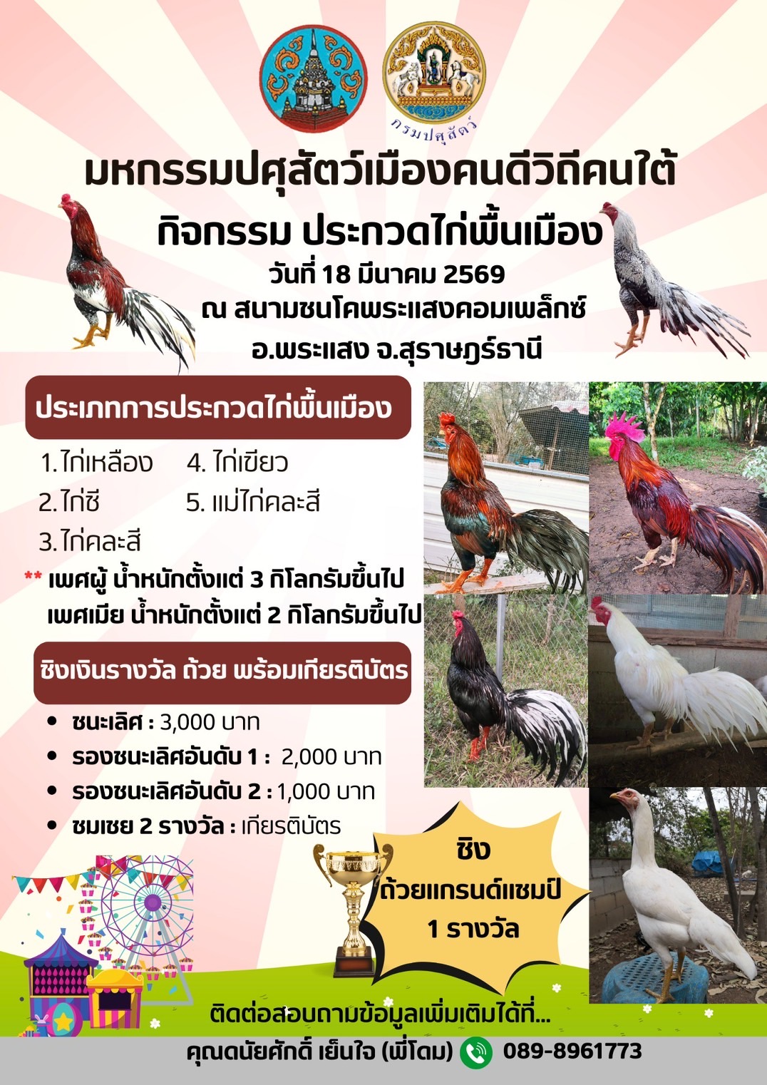 - กิจกรรม ประกวดไก่พื้นเมือง ในวันที่ 18 มีนาคม 2569