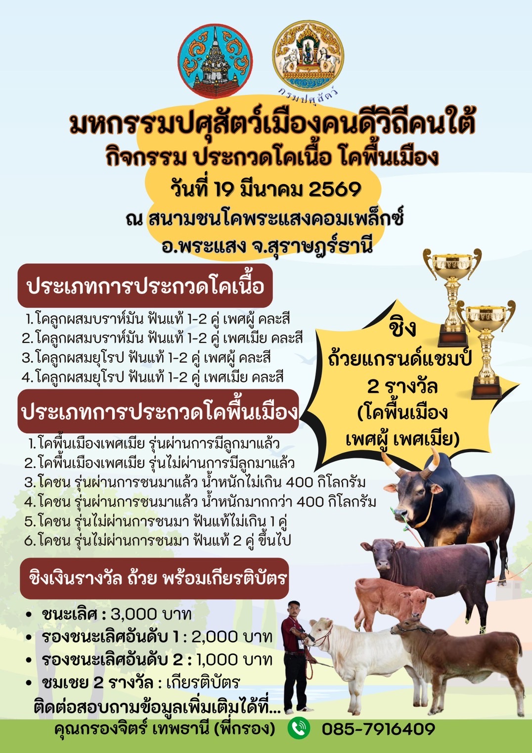 - กิจกรรม ประกวดโคเนื้อ โคพื้นเมือง ในวันที่ 19 มีนาคม 2569